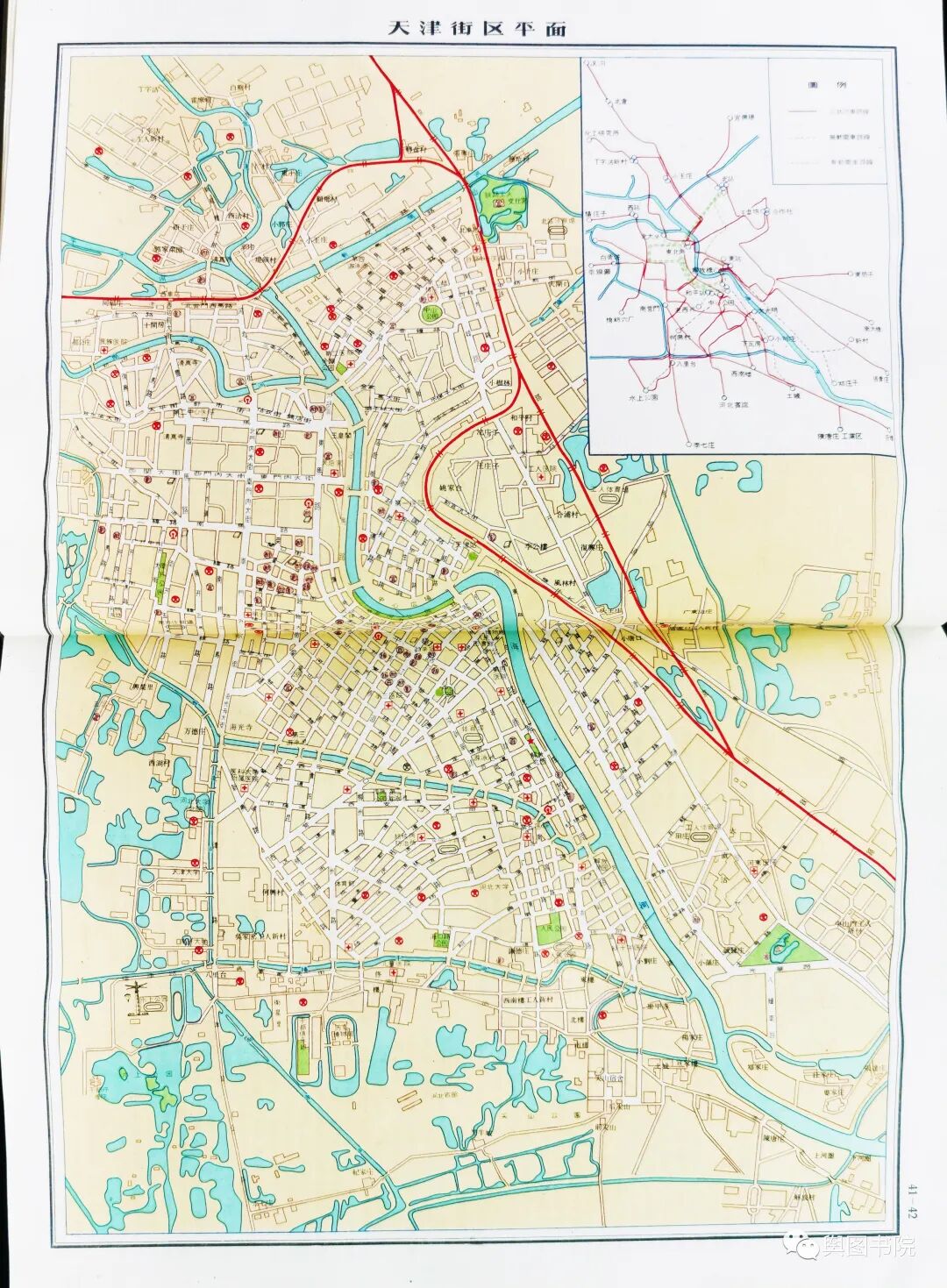 1960年天津街区相对解放前还是有所扩展,西南已经越过了卫津河,东北部也越过了铁路,逐渐形成今天的格局。