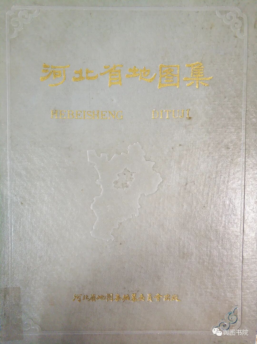 河北省地图集的封面颜色是比较独特的,没有采用常用的红色色系,而是采用乳白色色系。四个角的花边,是60年代普遍采用的,中间镶嵌河北省轮廓。对于河北这种有挖心地(北京直辖市)的轮廓来说,这种镶嵌刻画轮廓是最合适的处理方法了。
