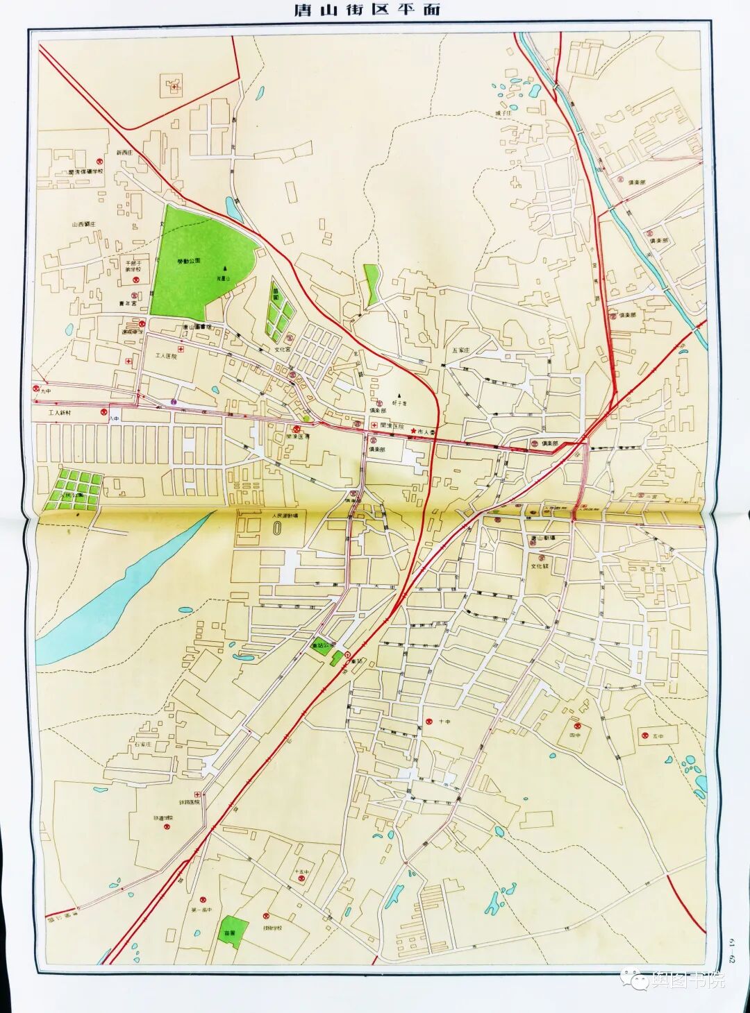1960年的唐山街区已经颇具规模,这里在当时已经形成比较现代化的城市。这幅街区图还展示了公交线路,是非常难得的。1976年唐山城区因为地震毁灭,后来重修,格局发生较大变化。