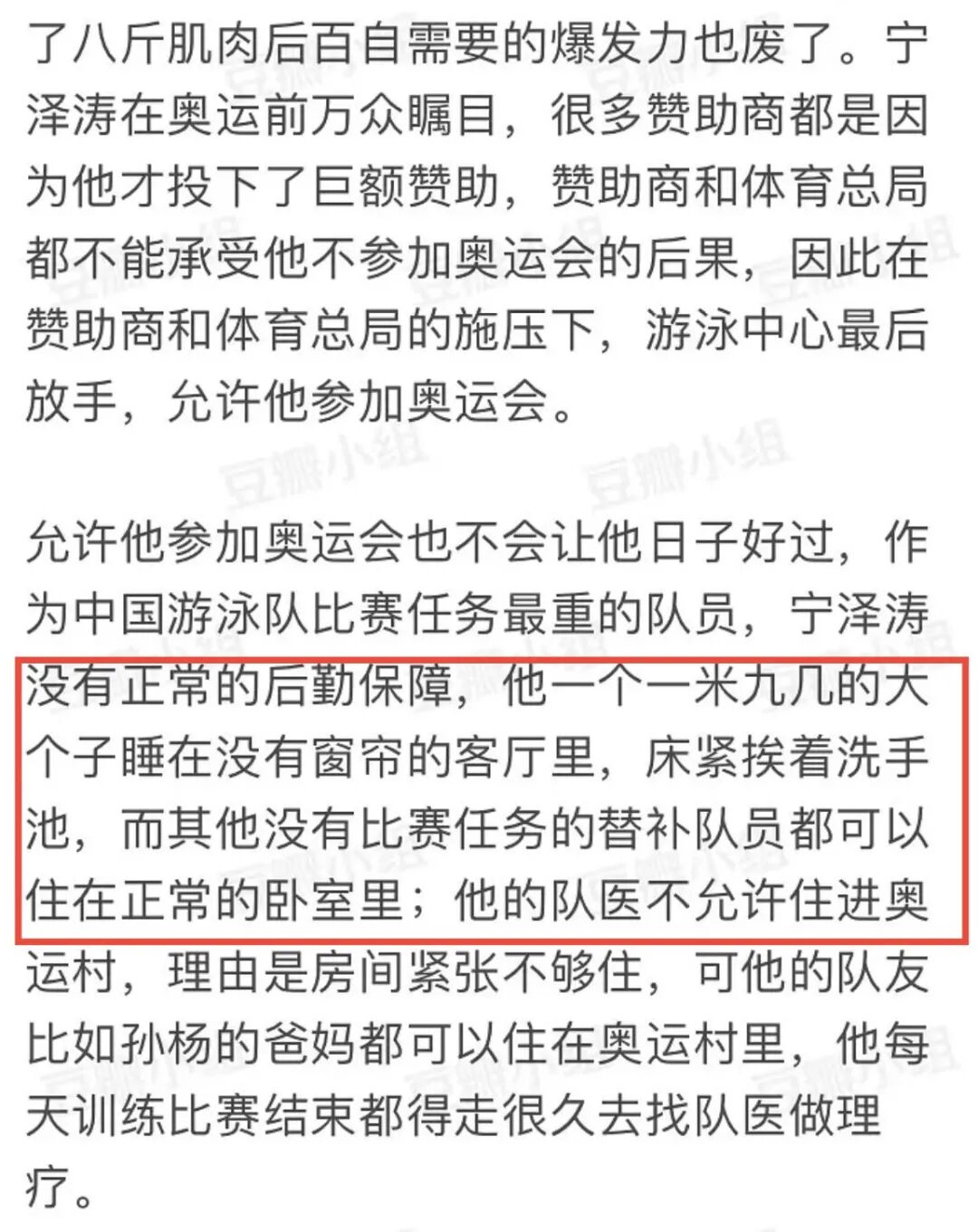 现在宁泽涛已经28岁了,过去那几年是一个运动员最好的青春年华,而他的自信与为国争光的梦想,就这样被扼杀在黑暗中。