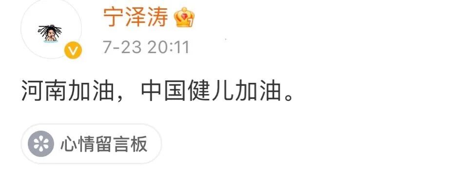 近年来,他几乎很少更新自己社交平台上的动态,最新一条是在23号发的:“河南加油,中国健儿加油。”