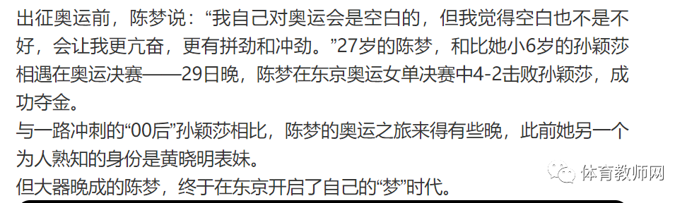 脸上不太有表情的陈梦,很清楚大家的期待:“确实在大家觉得我该成长起来的那几年,我并没有成长起来,反而到现在这个年纪让大家看到了我的进步和成熟,我觉得其实不晚。”