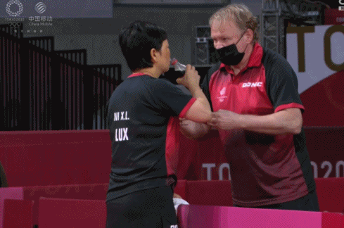 但这位“阿姨”,真正的身份是卢森堡的国宝级运动员,代表卢森堡参加东京奥运会乒乓球女单比赛。