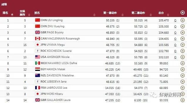 预赛阶段,刘灵玲总得分105.470分排名第1,朱雪莹总得分105.300分排名第2,两人携手闯入该项目决赛。由于两人预赛成绩排名第1和第2。故而,刘灵玲在总决赛最后出场,朱雪莹在总决赛倒数第二位出场。同时,参与决赛的选手仅仅需要完成一套动作。