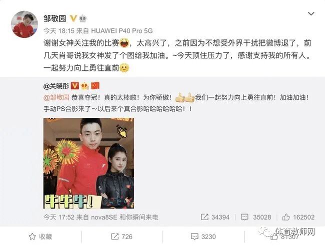 邹敬园曾经说如果拿了冠军希望能和关晓彤ps一张合影,现如今梦想成真,关晓彤恭喜邹敬园夺冠,并手动ps了两人的合影,希望以后来个真合影。
