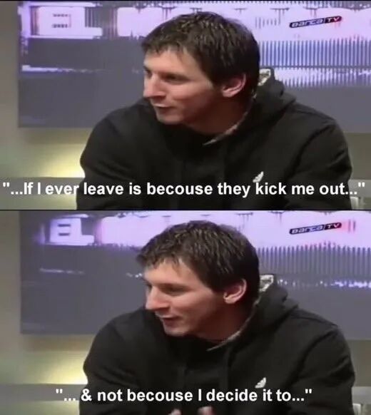 在梅西的早年采访中,他曾提到,自己不会离开巴萨,除非“他们赶我走”。