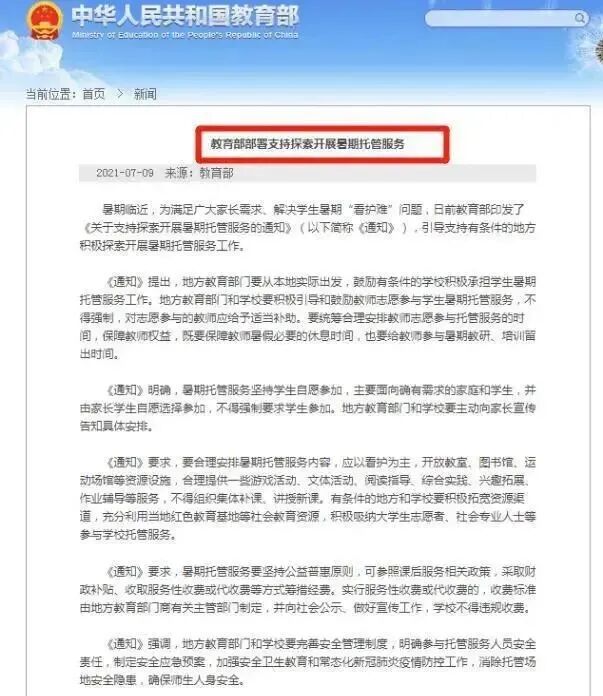 2021年7月底,教育部下发《关于进一步减轻义务教育阶段学生作业负担和校外培训负担意见》的文件,明确指出要从学生的课后作业量和校外补课方面减小学生和家长的负担。