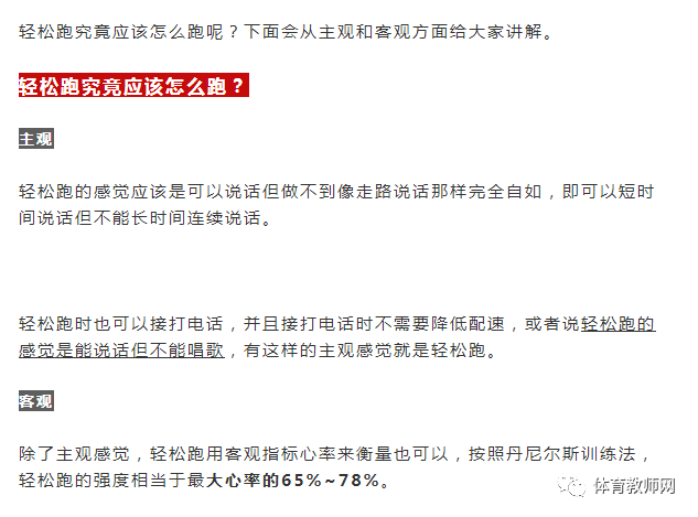 轻松跑重在落实轻松二字,但轻松跑不等于无限的慢。为了健身,用仅仅比走路快一点点的速度慢跑完全是可以的。但对于希望不断提升耐力的成熟跑者而言,轻松跑也是有一定强度要求的。
