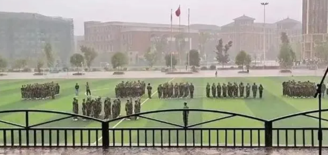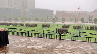 军训汇演现场下起了大雨