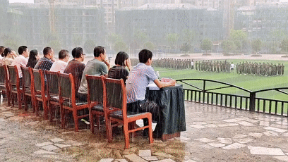 当天军训汇演中突然下雨