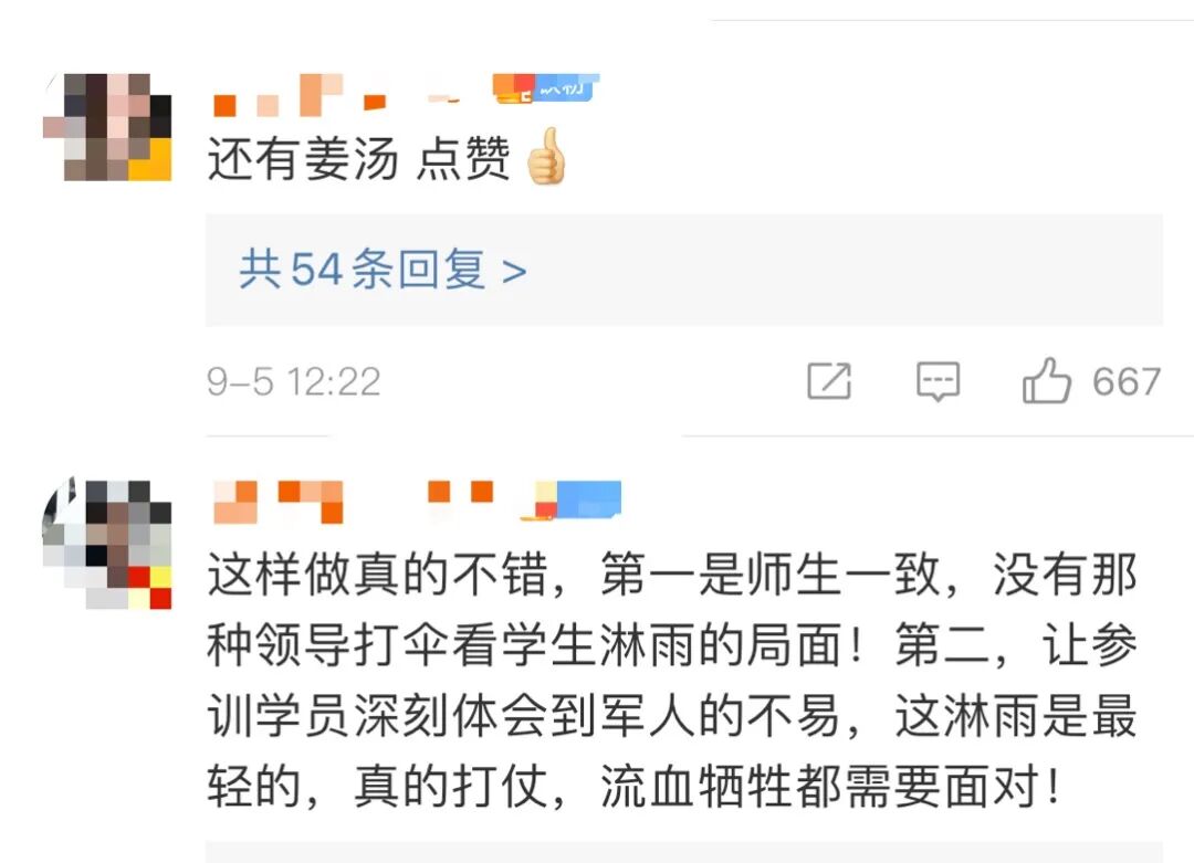 “军训不能被一点雨就给难住了