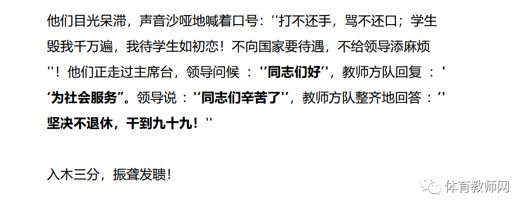 明天就是教师节了,有网友写了一个阅兵版“教师方队解说词”,虽然有点夸张成分,但也是生动的描述了很多老师真实的工作状况: