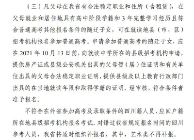 例如:2022年四川省高考报名通知中对“随迁子女”考生的报名要求如下: