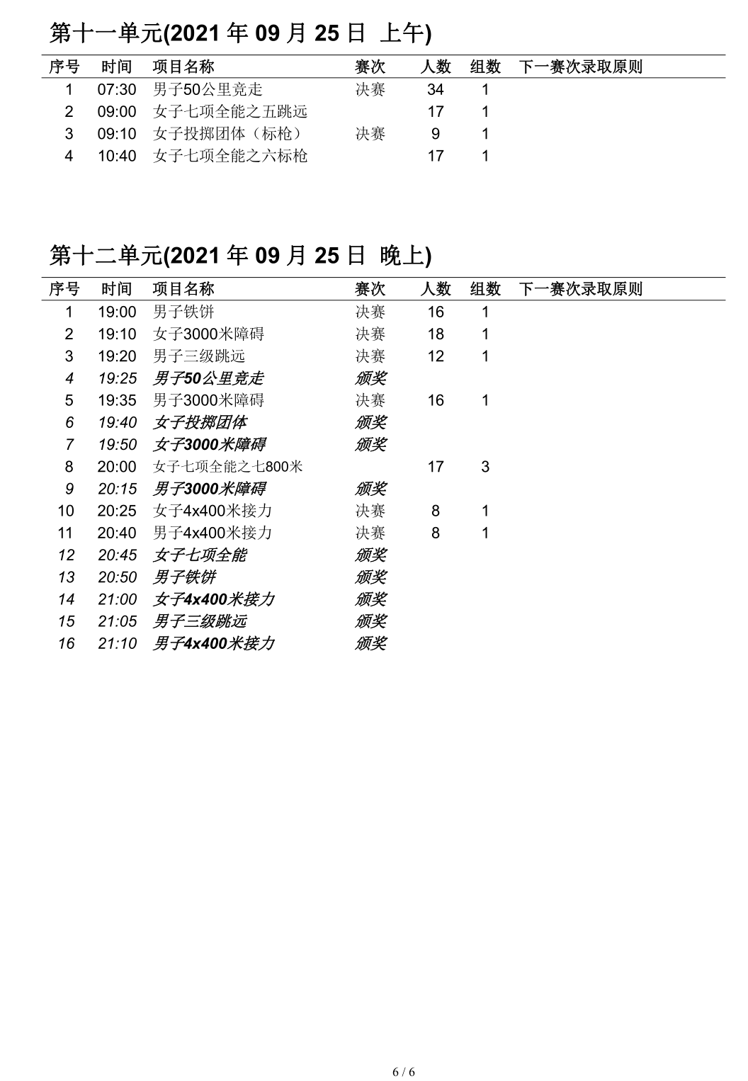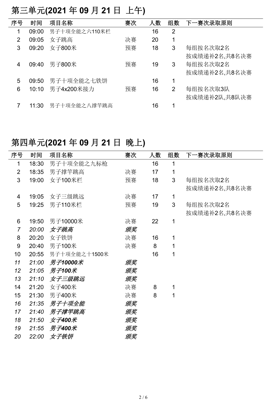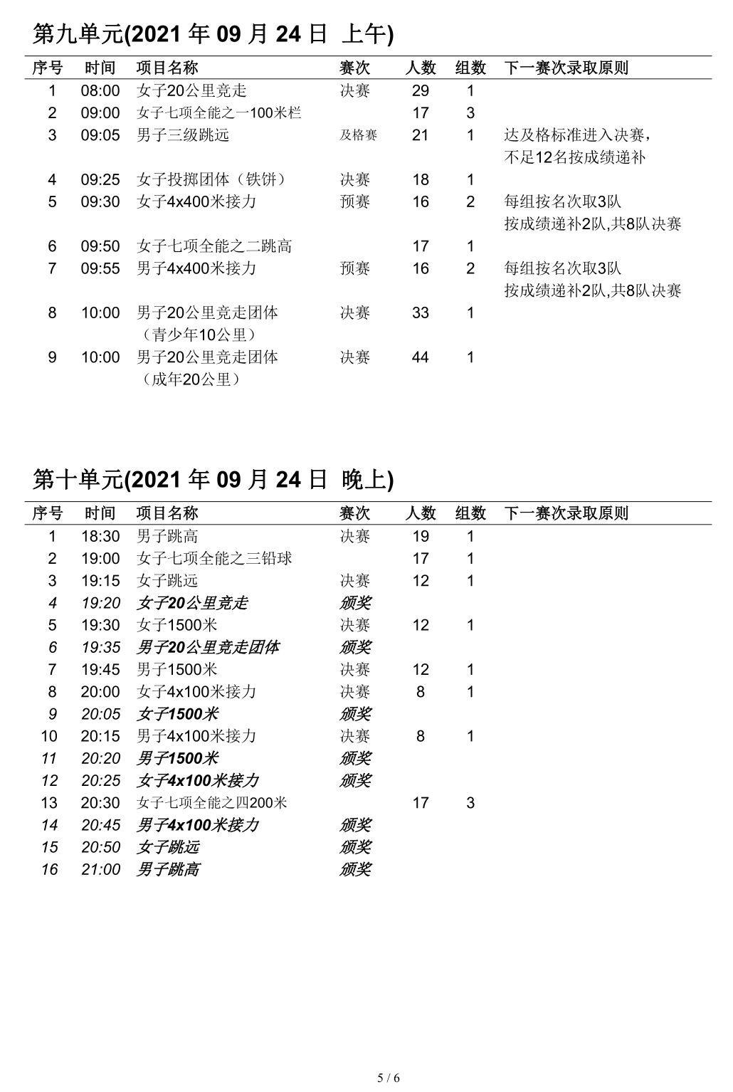 2021・全运会・田径赛程