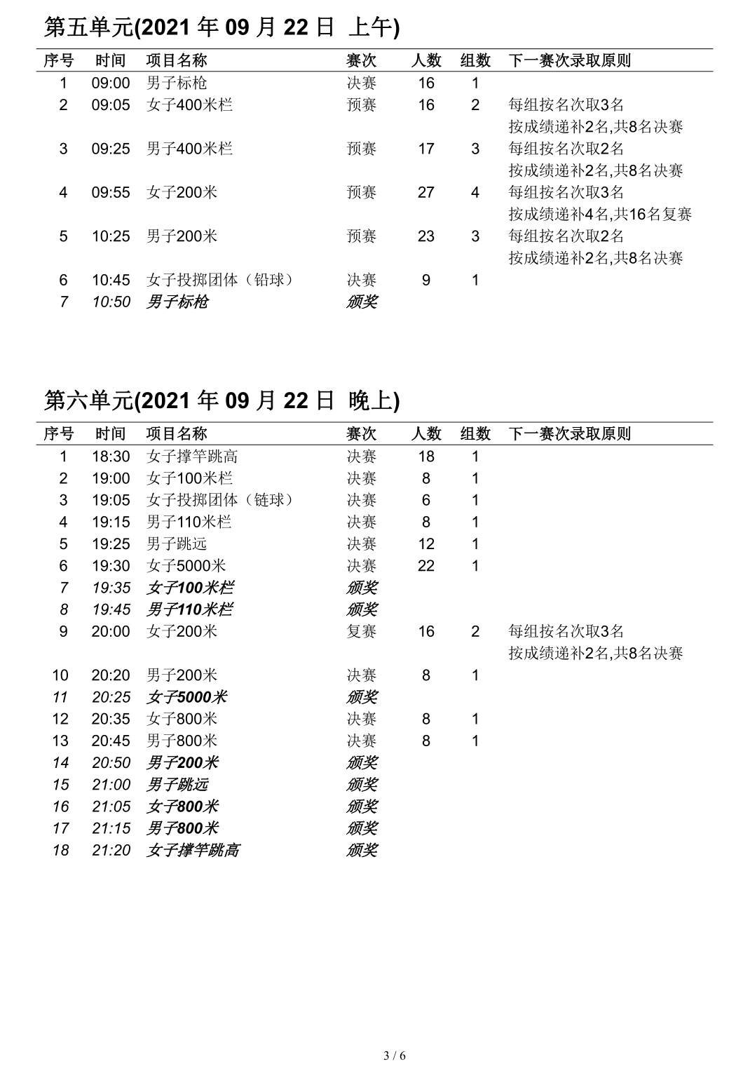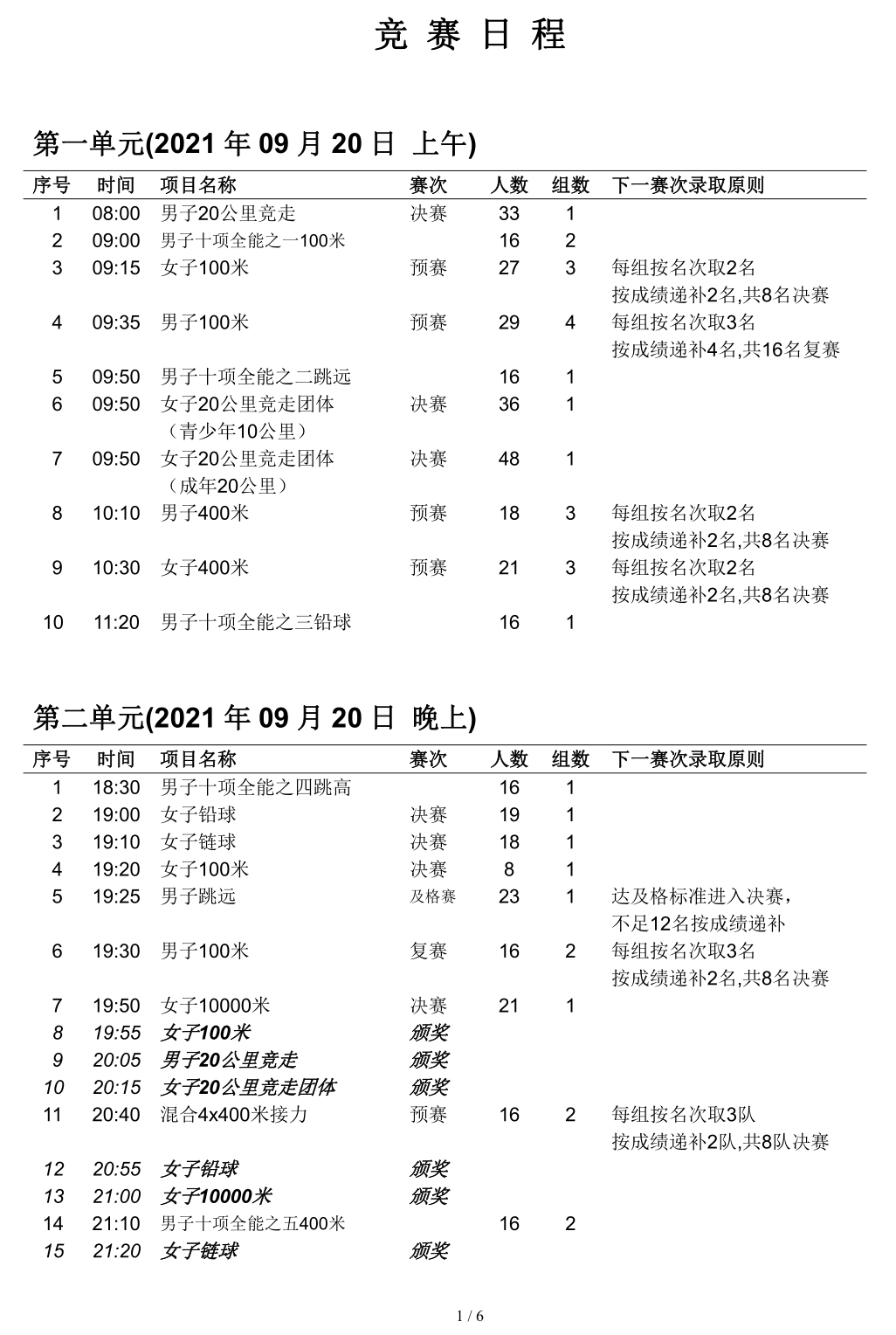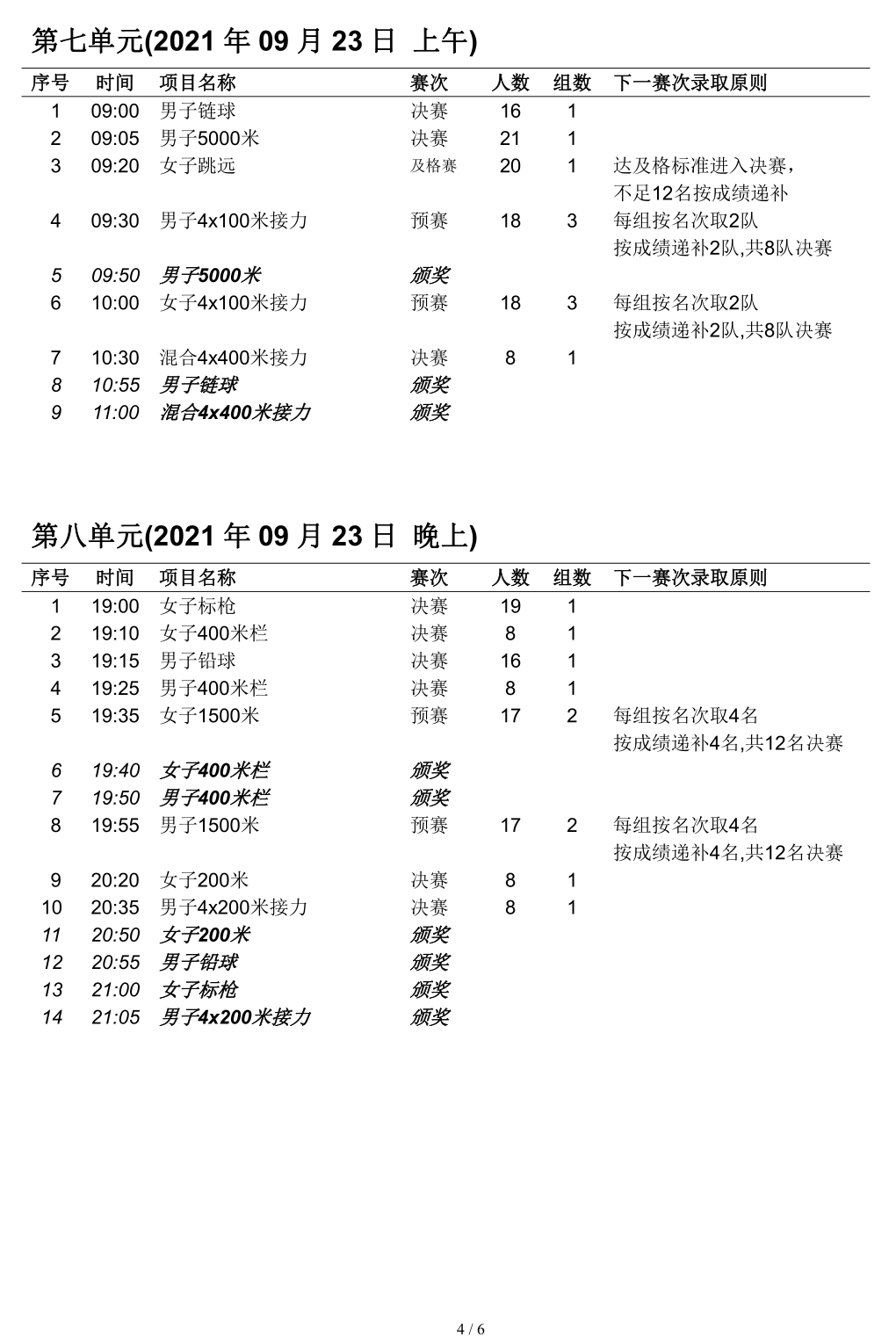 2021・全运会・田径赛程