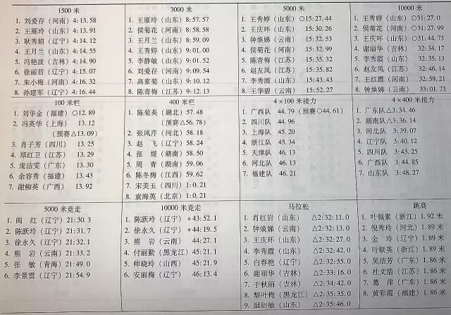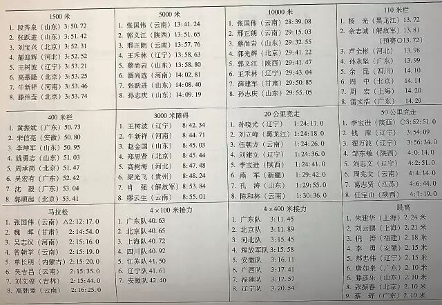 注意:之所以1993年和1987年相隔了6年,是因为当时国家体委作出决定,将全运会的举办年由夏季奥运会之前的一年改为夏季奥运会之后的一年,以不影响奥运备战与参赛。
