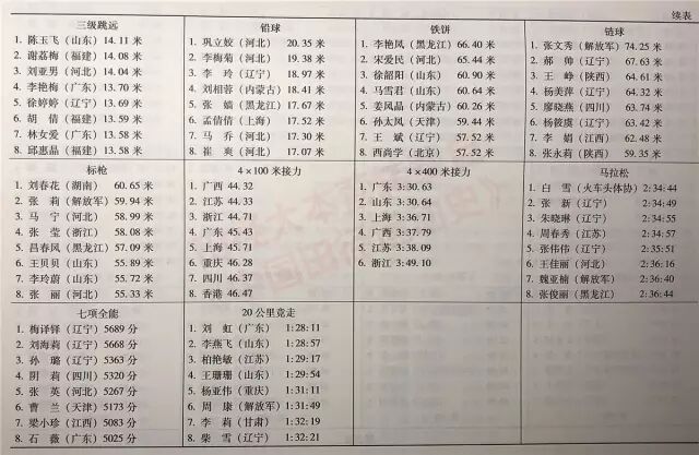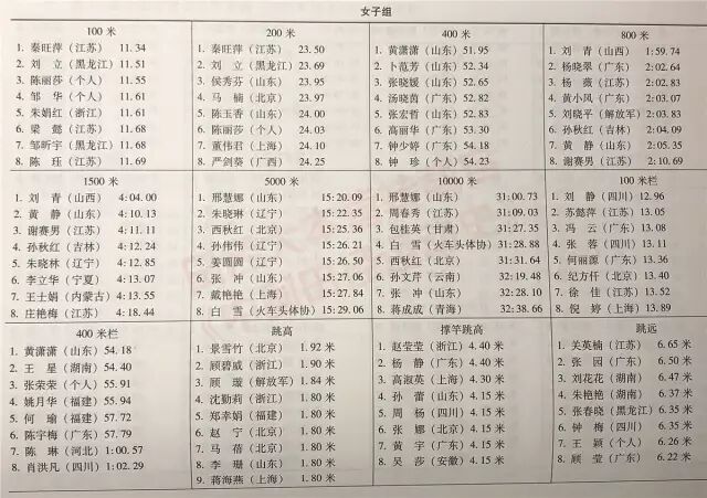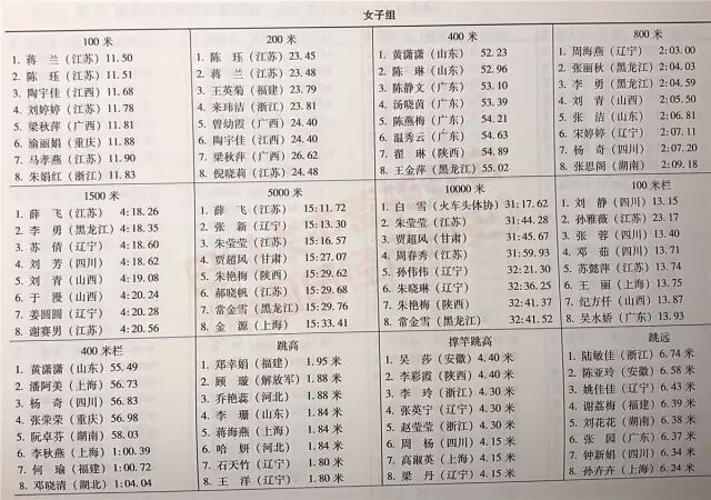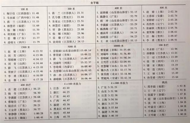 注:女子100米原第一名被取消成绩,故而本表格中第八名为从半决赛中递补进来的成绩。