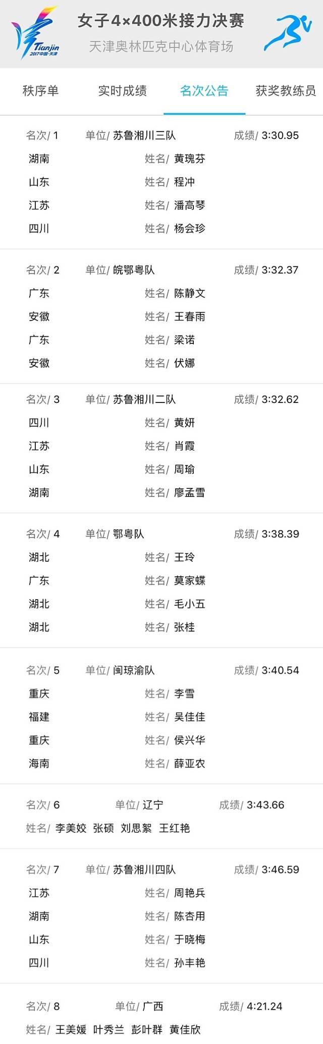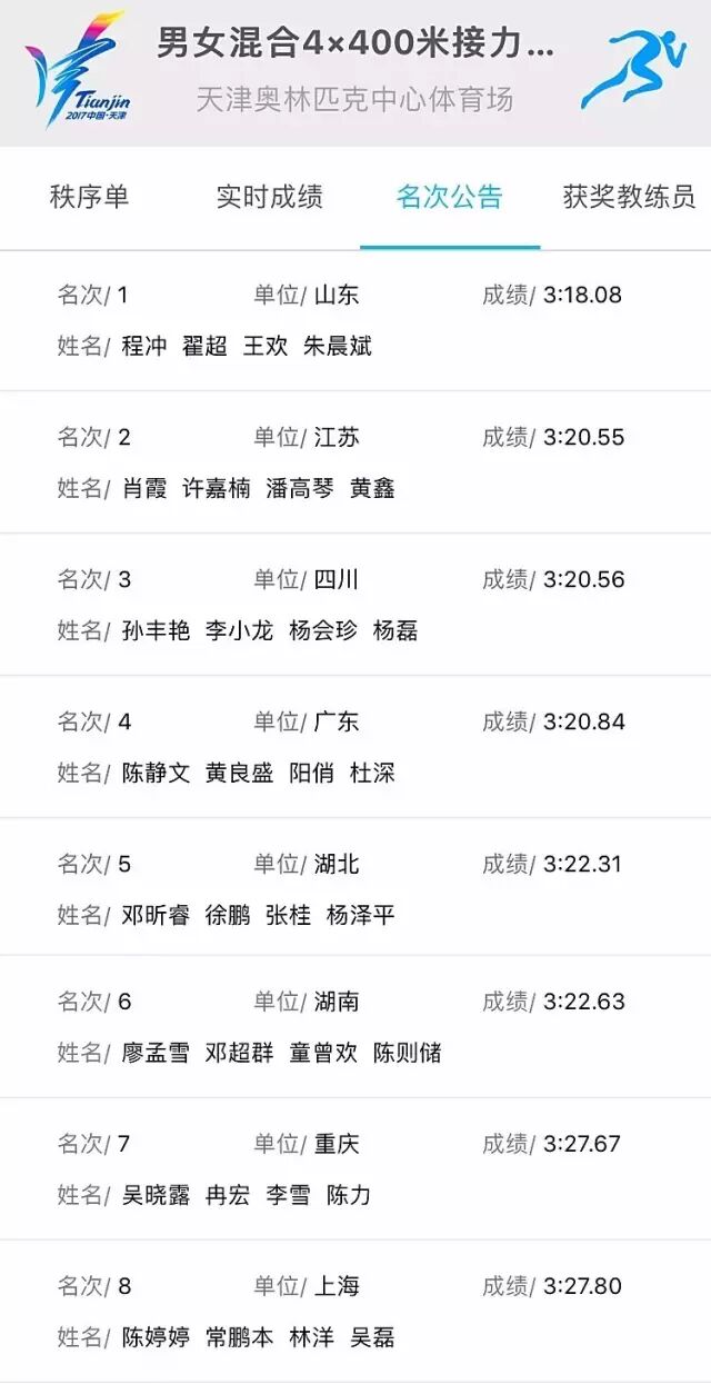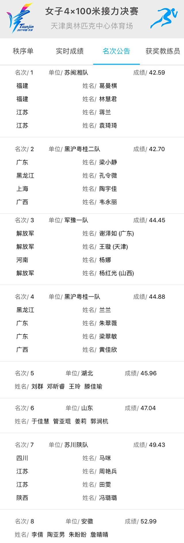 今天,为大家梳理2017年全运会(天津举行)・田径决赛全成绩——