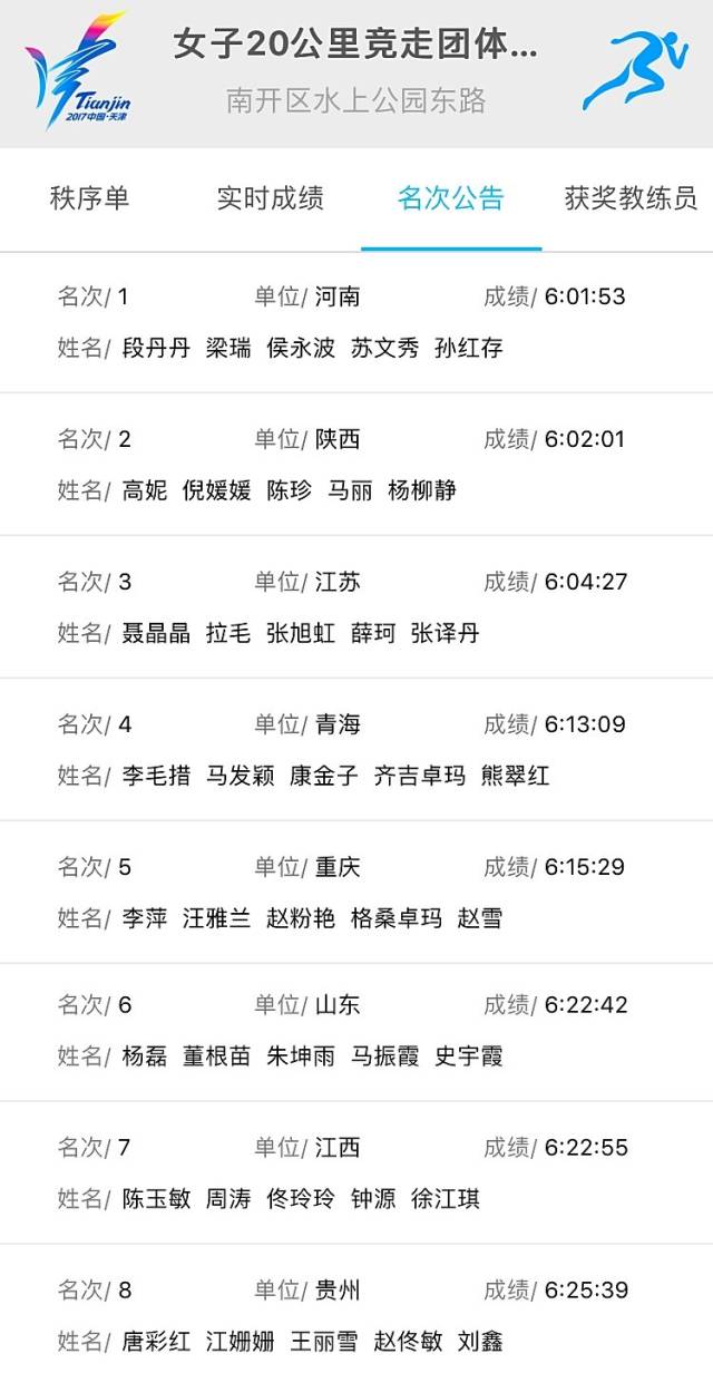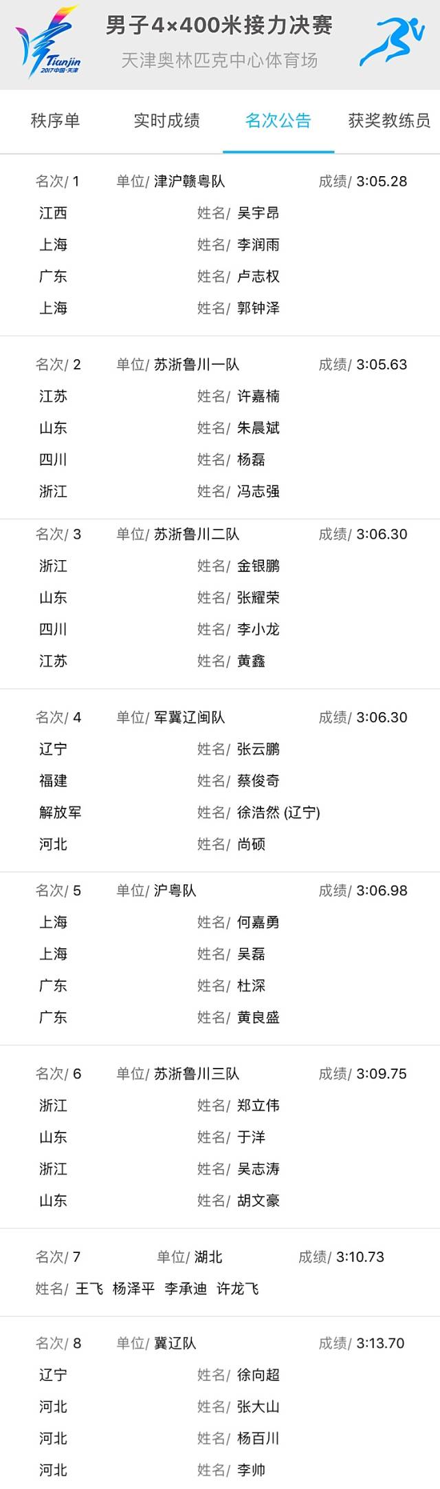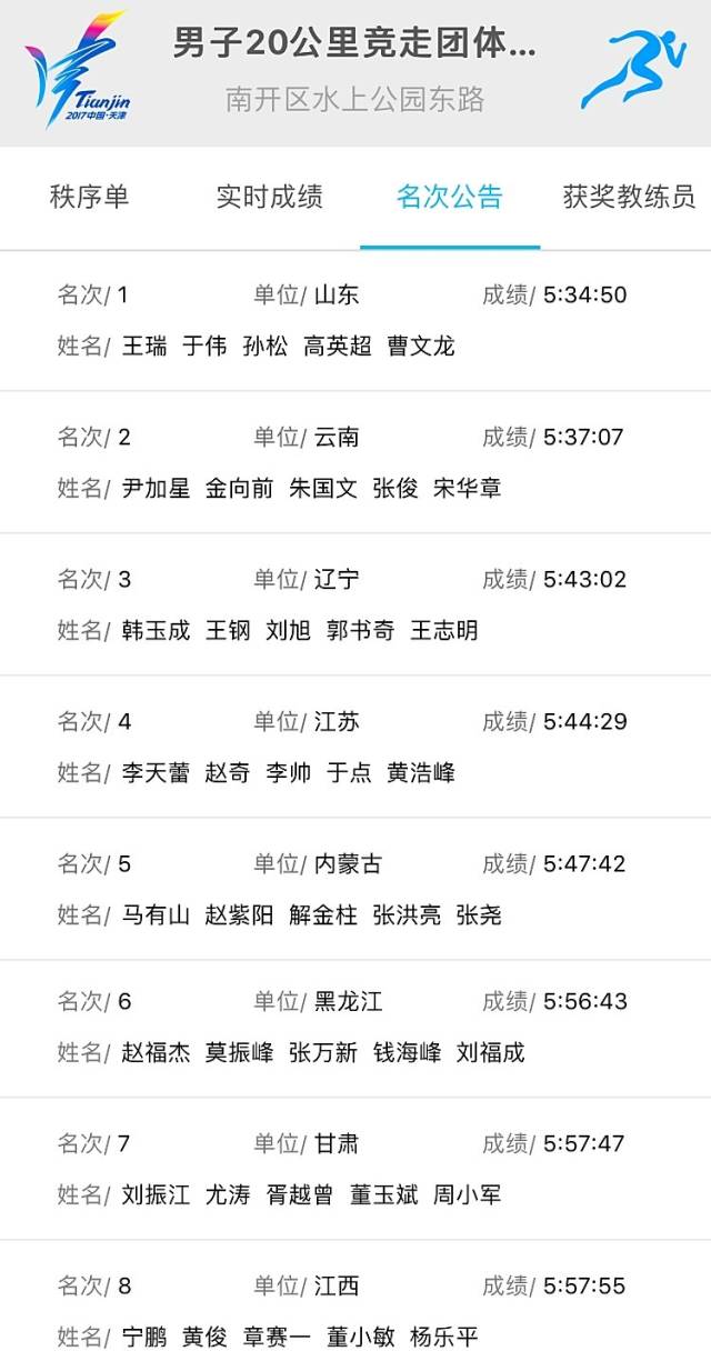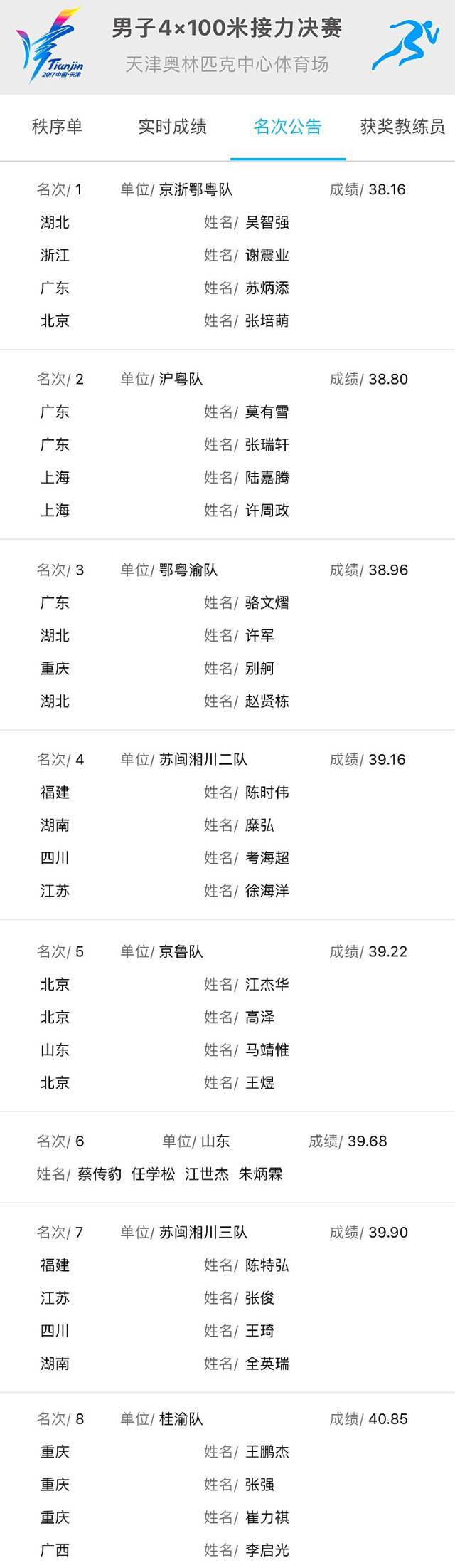 今天,为大家梳理2017年全运会(天津举行)・田径决赛全成绩——