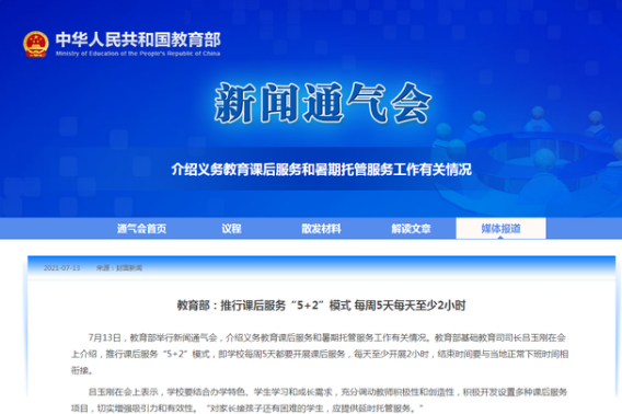 对于家长们比较关心的几个问题,教育部也一一做出了调整,首先就是在课后延时服务的时间上,推行了“5+2”模式。
