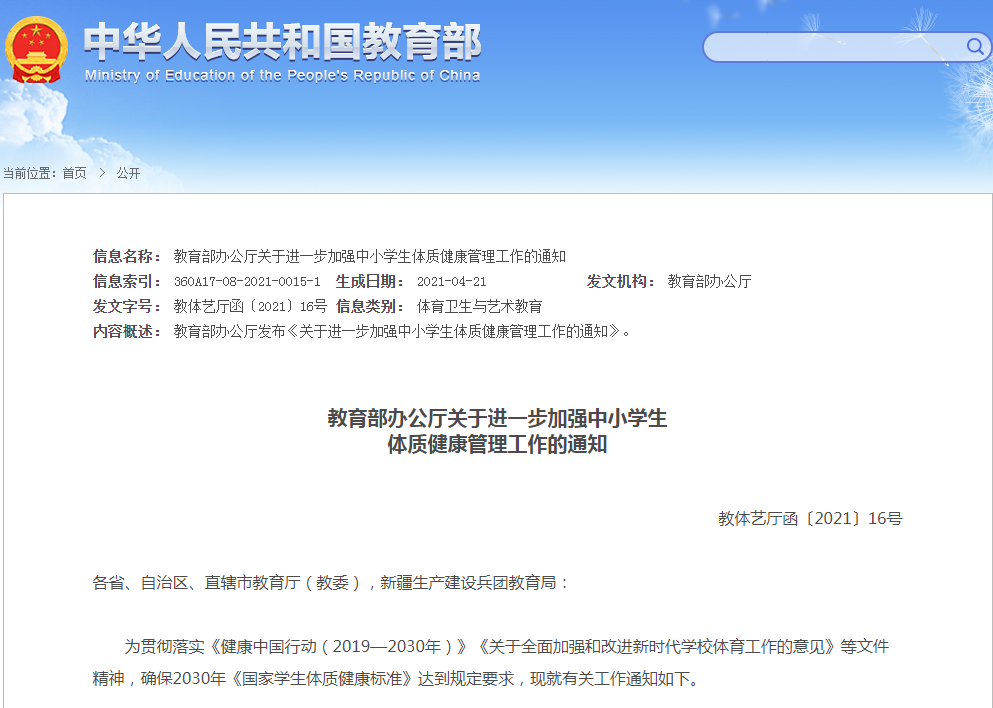 提高学生体质水平,离不开参加体育活动。在今年,教育部又发布了《教育部办公厅关于进一步加强中小学生体质健康管理工作的通知》,要求完善体质健康管理评价考核体系。接下来,就让新生家长们来看一看2021年小学体育测试项目及评分标准。
