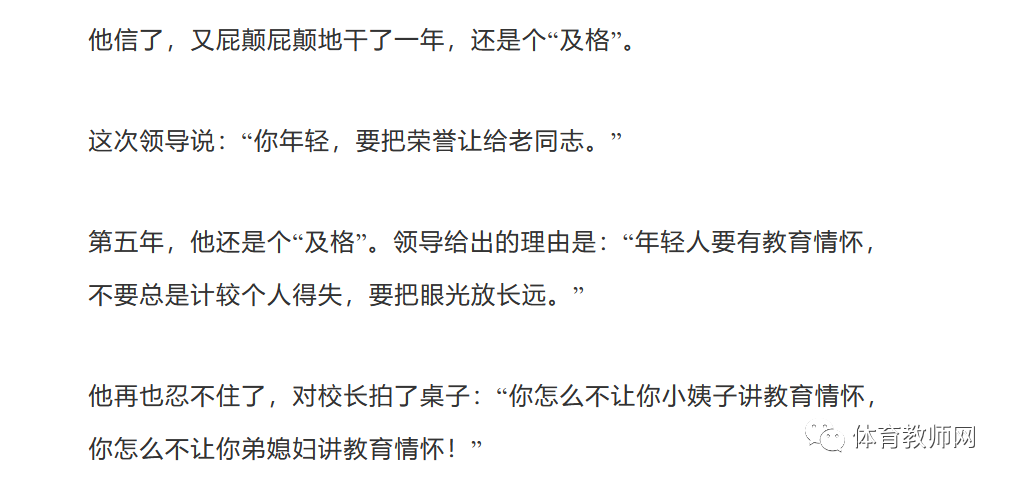 他们最喜欢做的就是表扬哪位老师带病工作、无偿加班、以校为家,号召全体教师向他们学习。