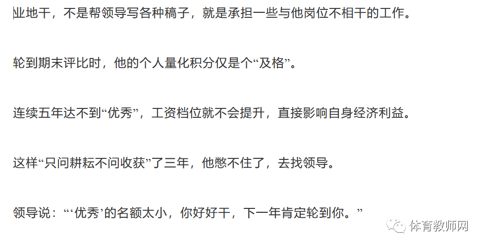 有个老师刚进学校时,什么活都让他干,他刚开始觉得这是领导对他的栽培,每天屁颠屁颠地跑,兢兢业