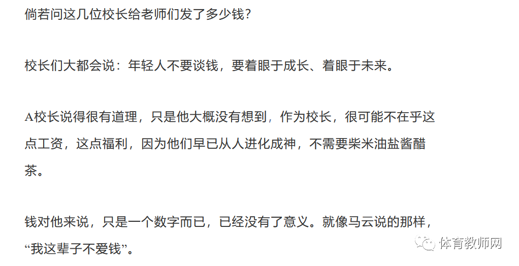 好校长跟教师谈钱,坏校长才跟教师谈情怀。