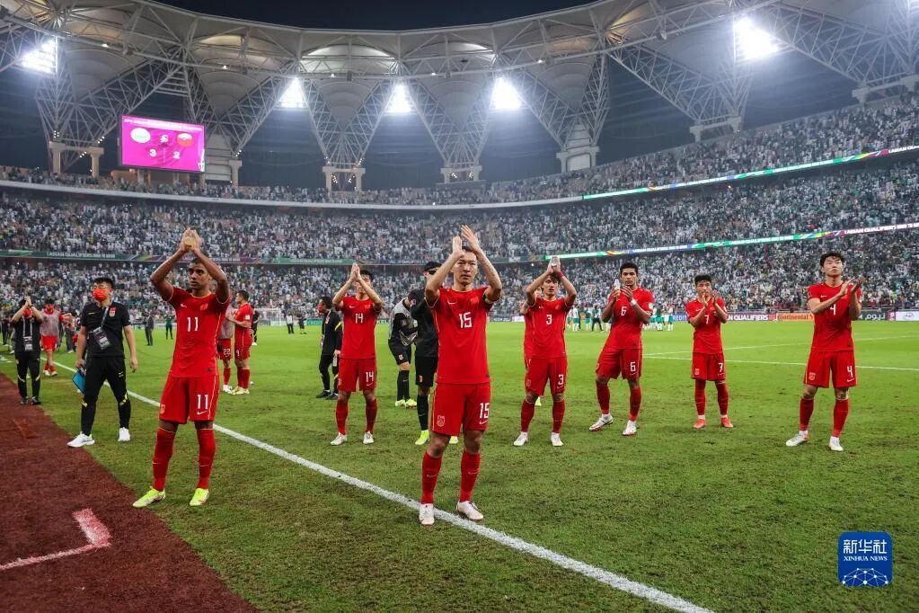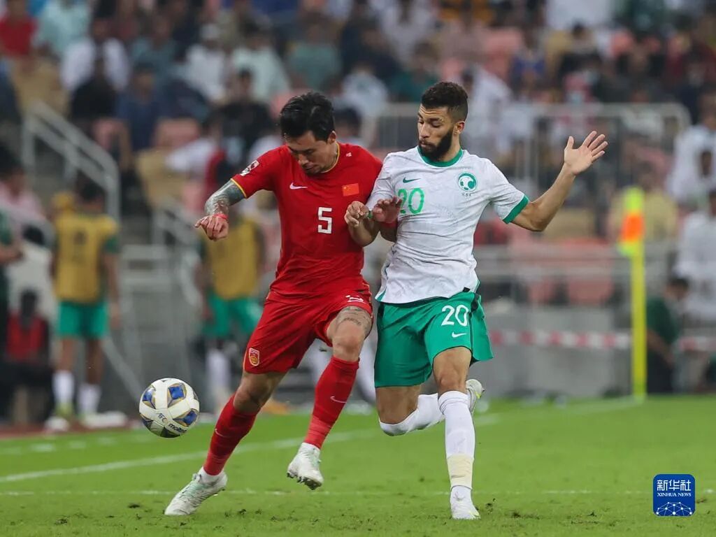面对前三轮保持全胜的沙特队,国足主教练李铁首发再次变阵为532阵型,力图通过防守反击寻找机会。沙特队则在上半场通过高位逼抢占据主动。第14分钟,沙特队断球后在中国队禁区前打出精妙配合,纳吉远射破门帮助主队首开记录。