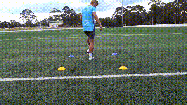 在本次的带球转身过人训练中,可以利用标志碟摆出一条狭长的路径,在这一路径中进行转身训练,当到达终点后,可以变换训练方式,采取脚底拉球的方式,以力所能及的最快速度返回终点。对儿童青少年球员而言,这些都是非常好的球性、球感的训练方法。