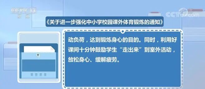 北京市教委近日发布《关于进一步强化中小学校园课外体育锻炼的通知》,明确全市中小学校要坚持 面向全体学生开展校园课外体育锻炼活动,号召全体学生“走出来、动起来、赛起来”。明确提出,