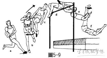 起跳时离横杆较远的一臂使颈地向上摆动,加一臂不要充分摆出,并且较早地制动,这样有利于肩轴倾向横杆。摆动腿的摆动应从屈膝的起跳腿旁开始,以膝盖领先,先屈膝折叠,后跳高架的远端支柱上方用力摆出。当摆动腿摆到起跳腿前方之后应向里转,而小腿和脚要稍许外展。这样的积极动作,有助于使骨盆保持在起跳力量的作用线上,围绕纵轴产生转身动作。此时,头应补偿性地转向横杆。
