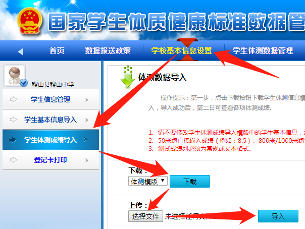 第二步,点击浏览找到填写完毕的信息模版,点击导入按钮等待数据导入完毕即可(如果导入失败,请根据下方错误信息提示进行修改)。学生体质测试评分标准及测试方法汇总