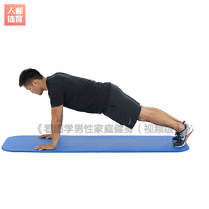 身体呈俯卧撑姿势,双手和双脚脚尖撑地。双手位于肩部正下方,双手间距与肩同宽。