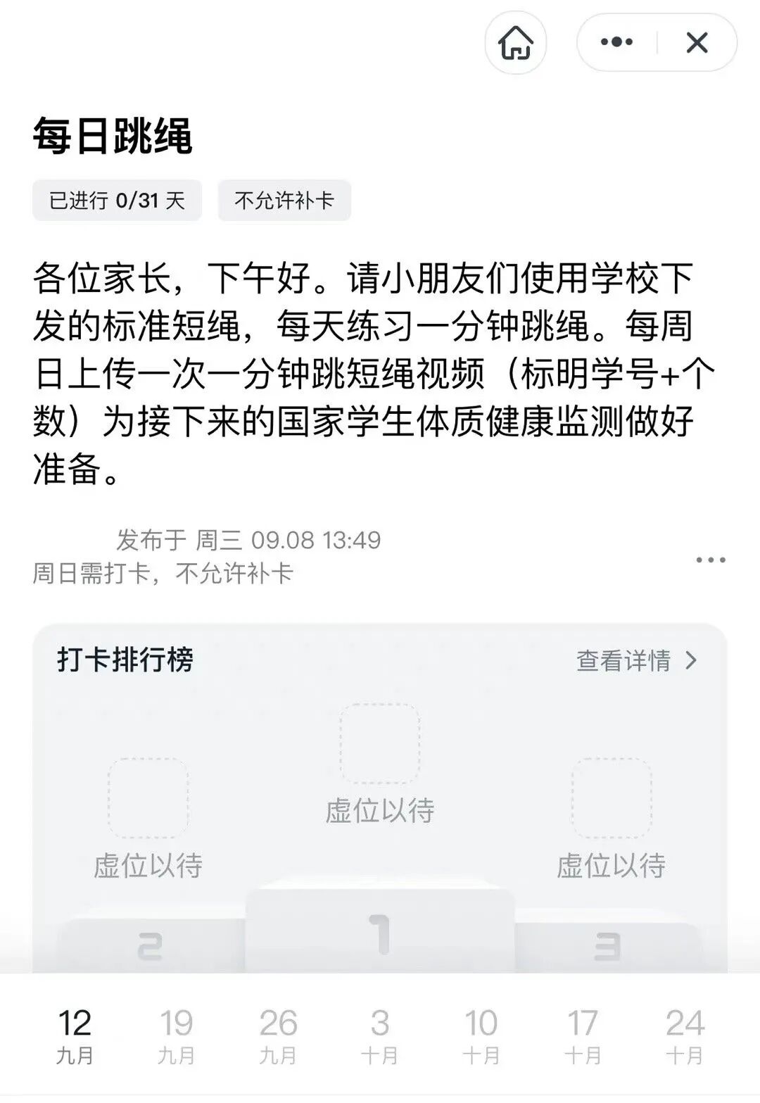 为了保证学生们的日常运动量,都制定了各类方案督促孩子们。体育老师们为能更好的批改孩子们的作业也绞尽脑汁,上传作业单,上传跳绳视频……