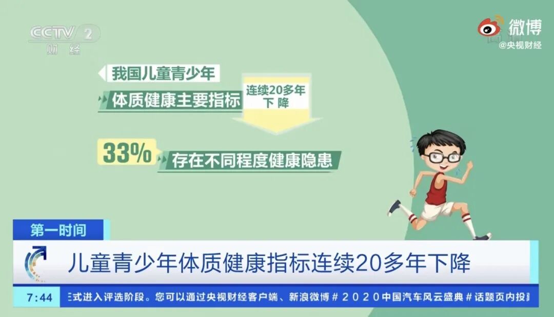 在大量学习作业的背后,也引起了家长的担心,这样的孩子在学科分数的重压下,根本没有时间做体育锻炼,我国青少年体质健康主要指标连续20多年下降,33%存在不同程度的健康隐患。