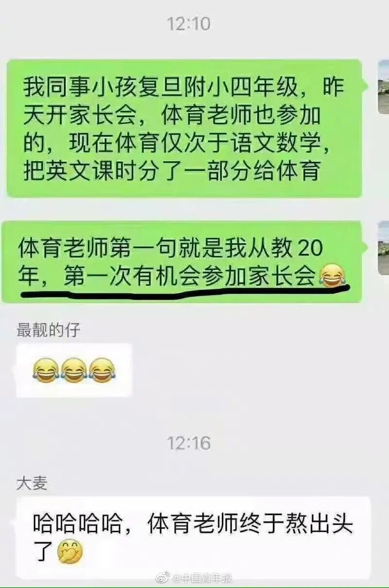 “双减”一出,倒是让体育老师也扬眉吐气了一番。体育老师从教20年第一次参加了家长会。