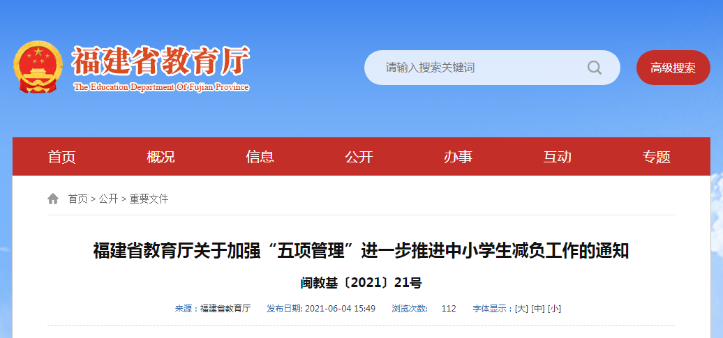 关于加强“五项管理”进一步推进中小学生减负工作的通知