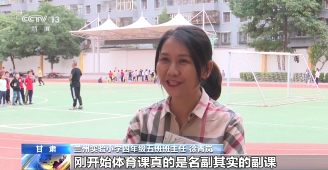 兰州实验小学四年级五班班主任 徐青岚:刚开始体育课真的是名副其实的副课,课程很少,然后时间也不多,主课老师课程紧张或者学期末的时候,会自然而然地去占用体育课。现在我们没有老师再去占用体育课。