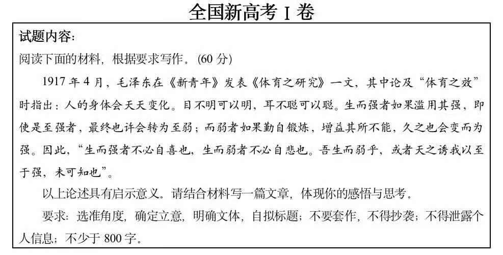 全国新高考Ⅰ卷”的作文题目和体育有关,体育终于“进”高考了!