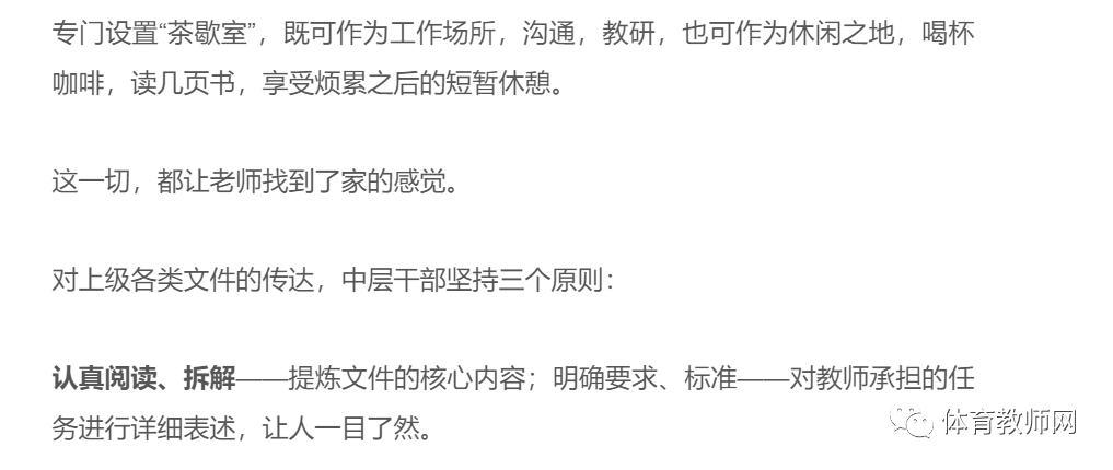 交流场所不一定在办公室,可以在教室、楼道、操场,更像是随机发生的,交流的内容也不一定完全限于工作。保证在一定周期内,和所有老师都有这样“不经意”的接触。