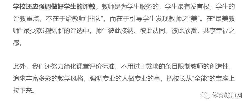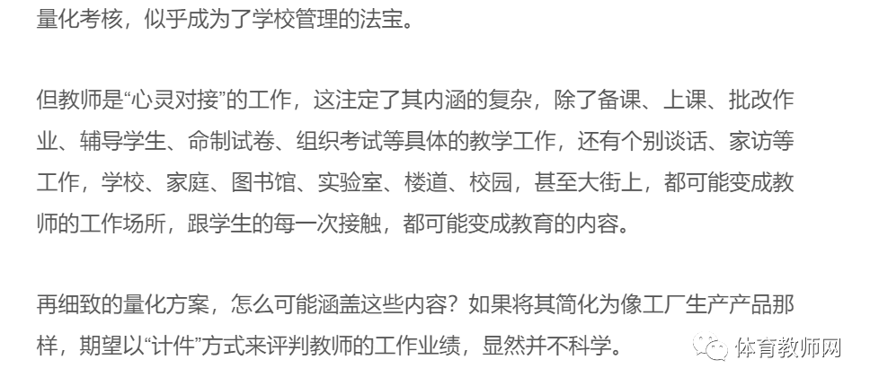 不要片面追求考核效果的可比性,也不要盲目追求考核的精细化,有时候多那么一点点“模糊”,多那么一点点弹性,反倒更有效果。所有的评价都应该是一个方向,那就是帮助教师成长,而不是简单地区分好坏。