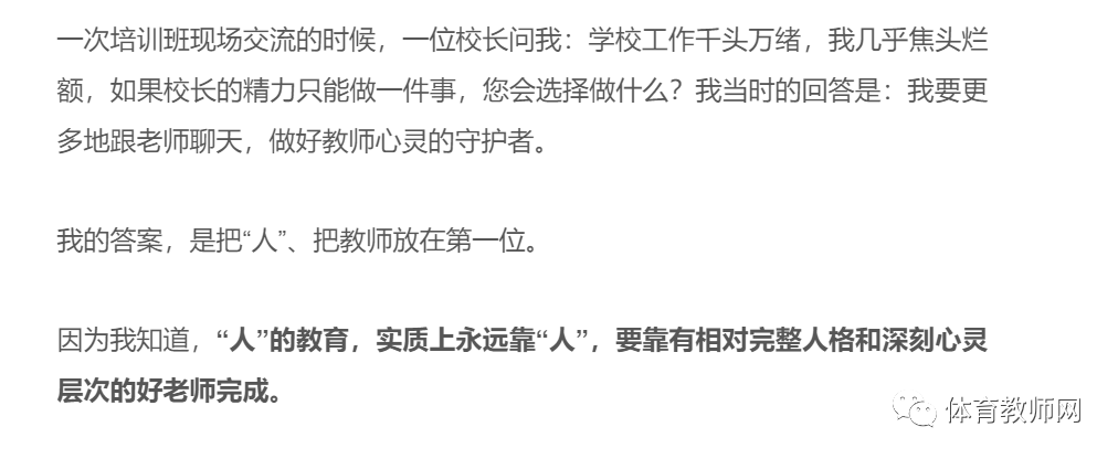 做好教师心灵的养护者,这种来自管理者的温度,将由教师传递给学生,传递给家长,传递给同事,传递给身边的每一个人,一所有人性温度的学校自然便会诞生。