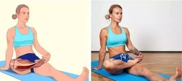 要点:坐在地板上,挺直背部,慢慢地将一条腿拉到胸前,把大腿转出来,另一条腿重复。