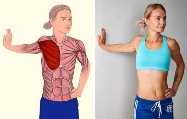 要点:面对墙站立,右手推墙,身体慢慢地离开墙壁,另一面重复。