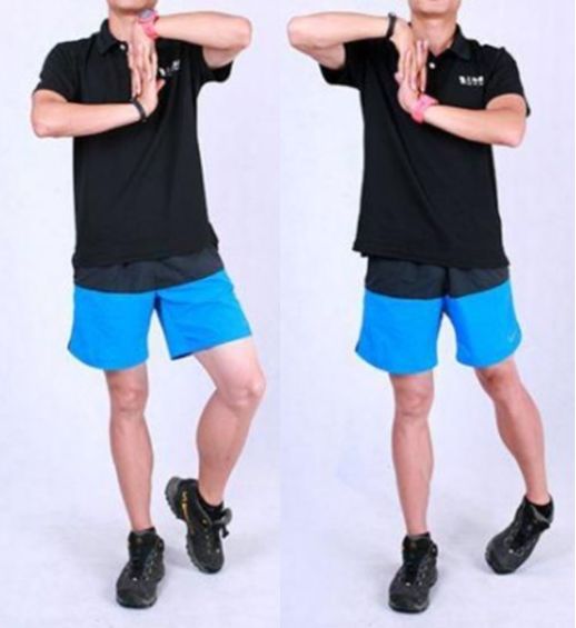 2.左、右体侧屈拉伸(4x8拍,左右手交换)