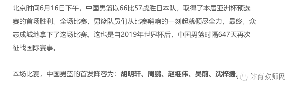 明天(6月17日)18:00,中国男篮就将迎来本届亚预赛第二个对手中国台北队。男篮小伙子们将再接再厉,继续拼搏,力争下一场胜利。