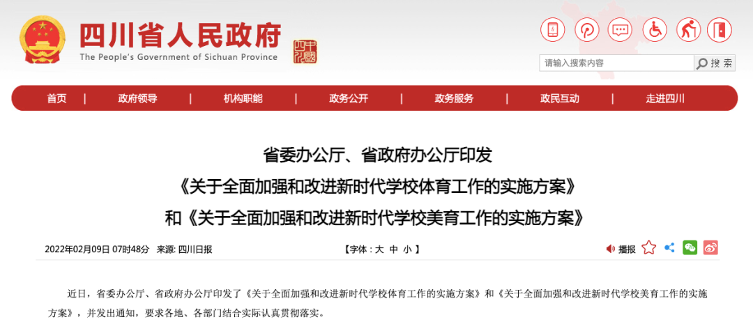 近日,省委办公厅、省政府办公厅印发了《关于全面加强和改进新时代学校体育工作的实施方案》和《关于全面加强和改进新时代学校美育工作的实施方案》,并发出通知,要求各地、各部门结合实际认真贯彻落实。