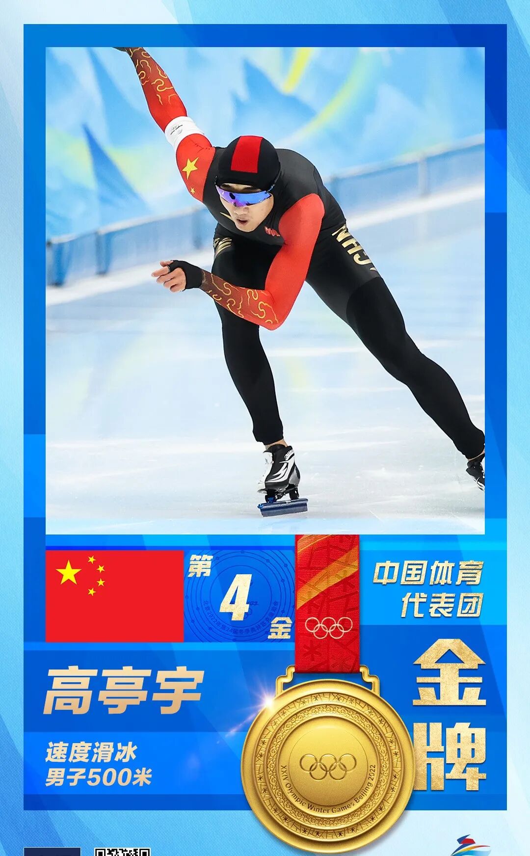 高亭宇赢得男子速滑500米铜牌