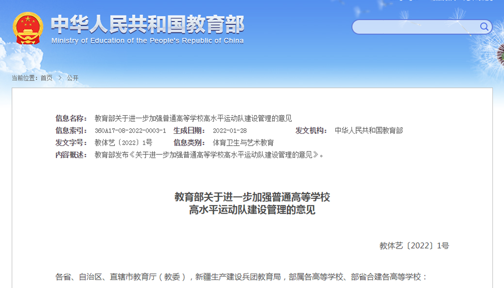 据教育部网站消息,教育部日前印发《关于进一步加强普通高等学校高水平运动队建设管理的意见》,其中明确规定高校不得给高水平运动员单列推免名额或制定单独推免办法。